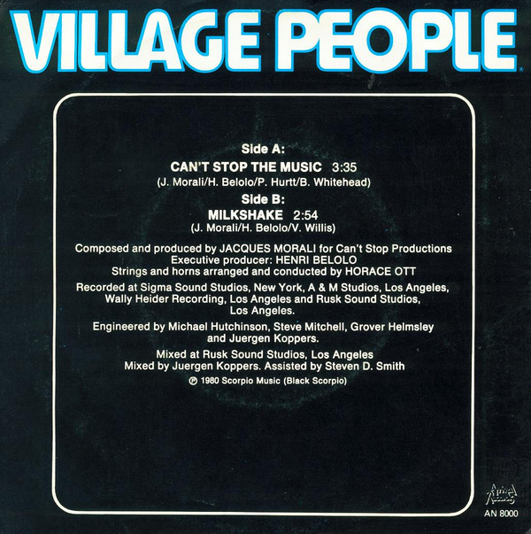 Village People – Can’t Stop The Music / Milkshake (1980) – Very Good Plus (VG+)