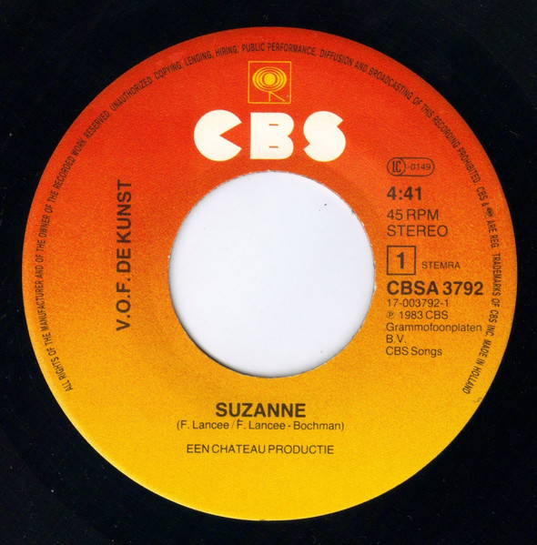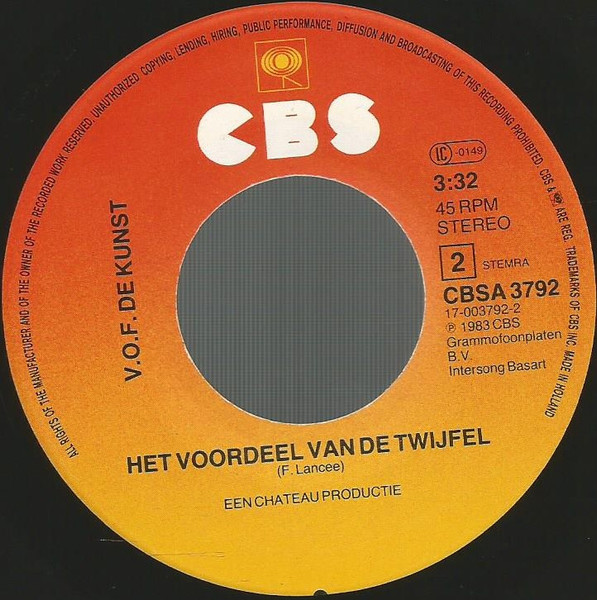 ℗ 1983 CBS Grammofoonplaten B.V./© 1983 CBS Grammofoonplaten B.V./CBS and [CBS logo] are reg. trademarks of CBS Inc./Printed in Holland Made in Holland Een Chateau Productie Runouts are stamped. Cat# CBSA 3792 on the labels Cat# A-3792 on the sleeve Track A: CBS Songs Track B: Intersong Basart