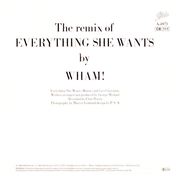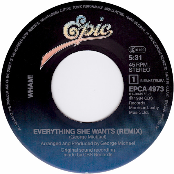 Wham! – Everything She Wants (Remix) (1984) – Very Good Plus (VG+)