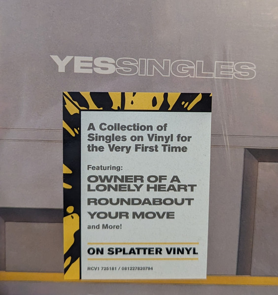 A compilation of single edits/mixes originally released in the U.S. and/or The U.K. from July 1971 until February 1984. A1, B2, B3, B4, B5 and B6 were ‘A’ sides in both The U.K. and The U.S. A2 was originally issued as a promotional only 7′ ‘B’ side in The U.K. A3 & A4 were issued as 7′ ‘A’ sides in The U.S. A5 was originally issued as a promotional only 7′ ‘A’ side in The U.S. A6 & B1 were originally issued as a 7′ in The U.S. Hype sticker text below as it appears on the sticker (with mixed upper and lower case characters): A Collection of Singles on Vinyl for the Very First Time Featuring: OWNER OF A LONELY HEART ROUNDABOUT YOUR MOVE and More! ON SPLATTER VINYL RCV1 725181 / 081227820794 Runouts all etched, except for the two groups of numbers after ‘J . Powell’ Made in Czech Republic